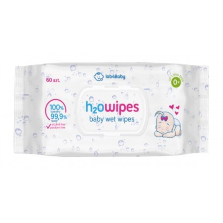 Lab4Baby H2O Wipes ultradelikatne chusteczki nawilżane na basie wody i ekstrakt z grejpfruta. 100 % bawełny, 99,9 % wody. Doskonała, czysta woda w połączeniu z ekstraktem z grejpfruta, w sposób przyjazny oczyszczają i wygładzają delikatną skórę maluszka m.in. podczas zmian pieluszek.