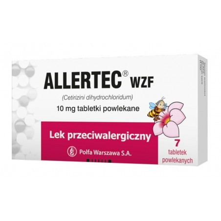 Tabletki powlekane Allertec WZF to lek do stosowania w objawach sezonowego i przewlekłego alergicznego zapalenie błony śluzowej nosa oraz w pokrzywce. Zawartą w leku cetyryzynę można stosować u osób dorosłych oraz dzieci w wieku powyżej 6 lat.