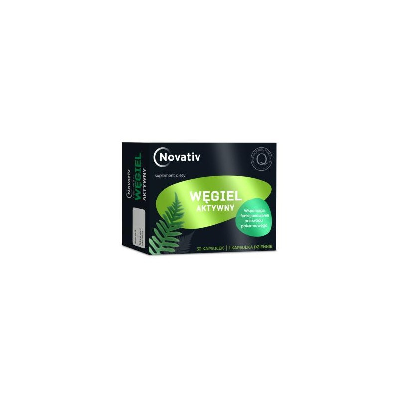 Novativ Węgiel Aktywny to suplement diety, który wspomaga prawidłowe funkcjonowanie układu pokarmowego, ze szczególnym uwzględnieniem zdrowia jelit. Zawiera węgiel aktywny i ekstrakt z mięty pieprzowej, które korzystnie wpływają na pracę przewodu pokarmowego.