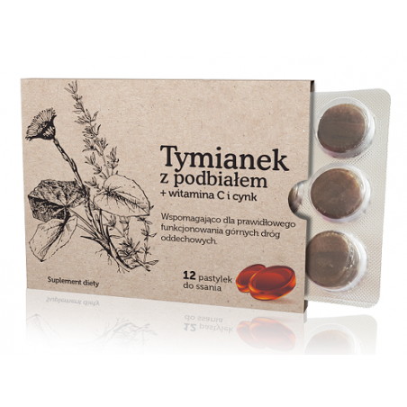 TYMIANEK Z PODBIAŁEM + witamina C i cynk 12 pastylek do ssania DIAGNOSIS