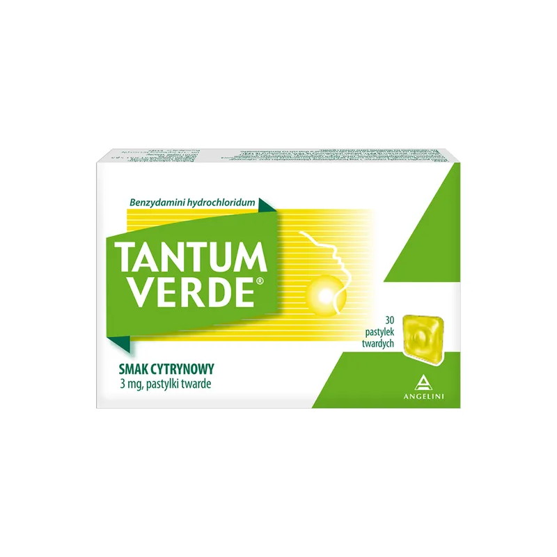 Tantum Verde smak cytrynowy to lek w formie pastylek do ssania do stosowania w leczeniu bólu, obrzęku oraz zaczerwienienia, które towarzyszą stanom zapalnym jamy ustnej i gardła. Tantum Verde smak cytrynowy posiada działanie przeciwzapalne i przeciwbólowe oraz działa miejscowo znieczulająco i odkażająco.