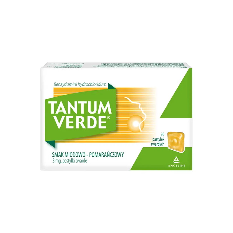 Tantum Verde smak miodowo-pomarańczowy to lek do stosowania w leczeniu bólu oraz zaczerwienienia w stanach zapalnych jamy ustnej i gardła. Lek ma postać pastylek do ssania, dzięki czemu może on działać bezpośrednio w jamie ustnej. Tantum Verde smak miodowo-pomarańczowy posiada działanie przeciwzapalne i przeciwbólowe oraz działa miejscowo znieczulająco i odkażająco.