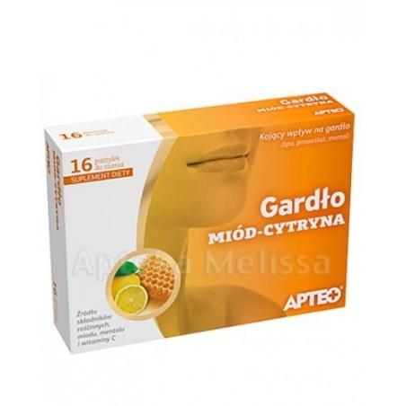 APTEO GARDŁO Miód-cytryna Suplement diety wskazany do stosowania w celu wsparcia gardła i strun głosowanych oraz wzmocnienia odporności.
