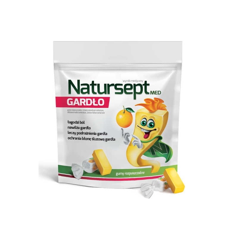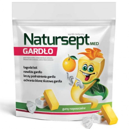 Wyrób medyczny Natursept med gardło, posiada właściwości powlekające, dzięki czemu łagodzi, towarzyszące stanom zapalnym, podrażnienie gardła, objawiające się bólem, pieczeniem, uczuciem suchości i trudnościami w przełykaniu. Powleka błonę śluzową gardła ochronnym filmem i zabezpiecza przed szkodliwym wpływem czynników zewnętrznych. Wspomaga przywrócenie równowagi i funkcji ochronnych błony śluzowej. Ponadto Natursept med gardło nawilża i odświeża błonę śluzową jamy ustnej i gardła.