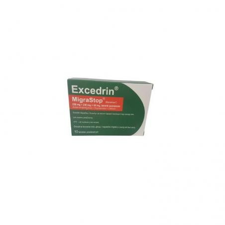 Excedrin MigraStop to lek przeciwbólowy zawierający kwas acetylosalicylowy, paracetamol i kofeinę, przeznaczony do doraźnego leczenia bólu głowy oraz napadów migreny (z aurą lub bez). Dzięki synergicznemu działaniu składników, skutecznie zmniejsza ból, gorączkę i działa przeciwzapalnie, wspierając komfort pacjenta.