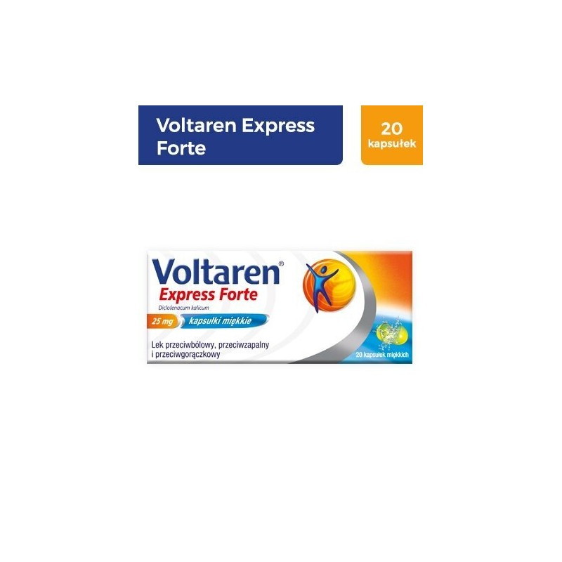 Voltaren Express Forte działa przeciwbólowo i przeciwzapalnie zmniejsza również gorączkę.