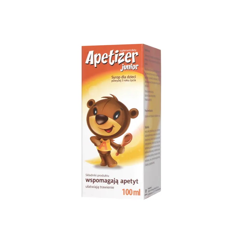 Apetizer junior - suplement diety w postaci syropu, zawierający wyciągi roślinne i witaminy. Jest przeznaczony dla dzieci powyżej 3 roku życia.
