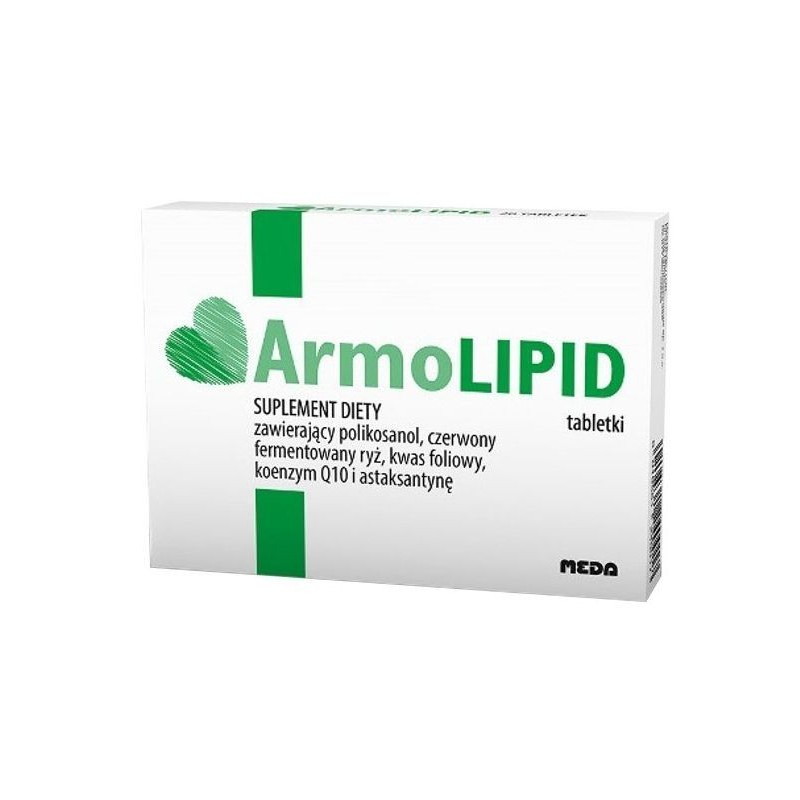 Armolipid jest suplementem diety zawierającym czerwony fermentowany ryż, polikosanol, kwas foliowy, koenzym Q10 oraz astaksantynę. Czerwony fermentowany ryż powstaje w procesie fermentacji ryżu z użyciem drożdży. Fermentowany czerwony ryż zawiera monakolinę, naturalną substancję, która ze względu na budowę chemiczną zaliczana jest do grupy statyn. Polikosanol jest mieszaniną naturalnych alkoholi tłuszczowych zawartych w woskach roślinnych trzciny cukrowej oraz wosku pszczelim. Kwas foliowy zawarty w Armolipid pomaga w utrzymaniu prawidłowego metabolizmu homocysteiny. Koenzym Q10 jest fizjologicznym składnikiem obecnym w organizmie. Astaksantyna jest substancją syntetyzowaną przez mikroalgi Haematococcus pluvialis. Zawarty w preparacie kwas foliowy pomaga w prawidłowej produkcji krwi.