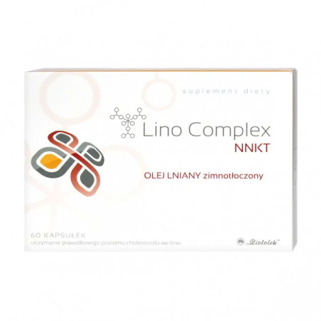 LinoComplex NNKT - suplement diety, zawierający w swoim składzie olej lniany zimnotłoczony. Produkt dla osób dorosłych.
