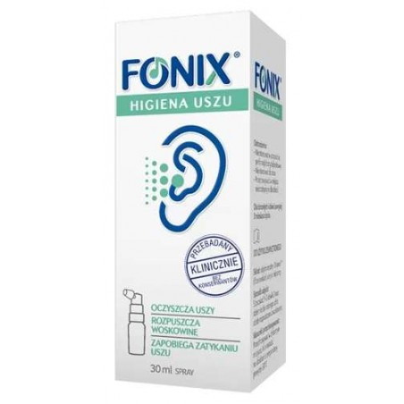 Fonix Higiena Uszu to wyrób medyczny przeznaczony do rozpuszczania i usuwania zgromadzonej woskowiny z uszu. Spray łączy mechaniczne oczyszczanie z bezpieczeństwem i skutecznością naturalnej oliwy z oliwek. Mechanizm rozpylania Fonix Higiena Uszu zapewnia doskonałe rozproszenie w kanale słuchowym. Po zastosowaniu sprayu woskowina rozpuszcza się i jest usuwana z ucha stopniowo, dzięki naturalnym mechanizmom oczyszczania. Preparat nie zawiera konserwantów. Może być stosowany u niemowląt po 3 miesiącu życia.