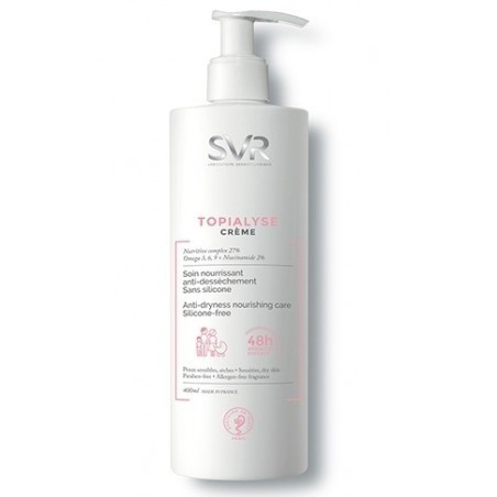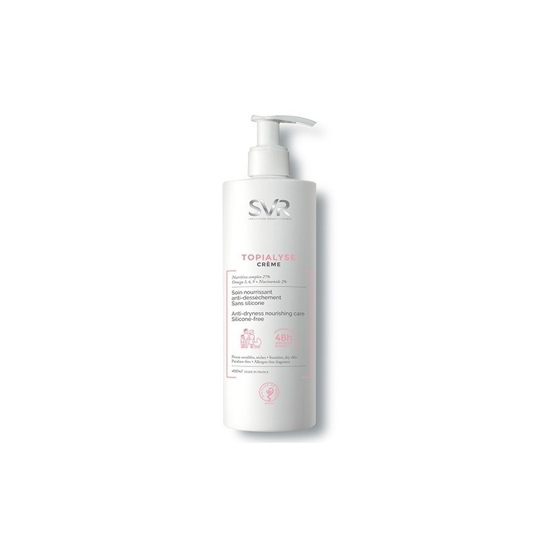 SVR Topialyse Krem odżywczy przeciwdziała wysuszaniu się skóry. Polecany do pielęgnacji twarzy i ciała dla osób dorosłych oraz dzieci i niemowląt od 1. dnia życia (z wyłączeniem wcześniaków).