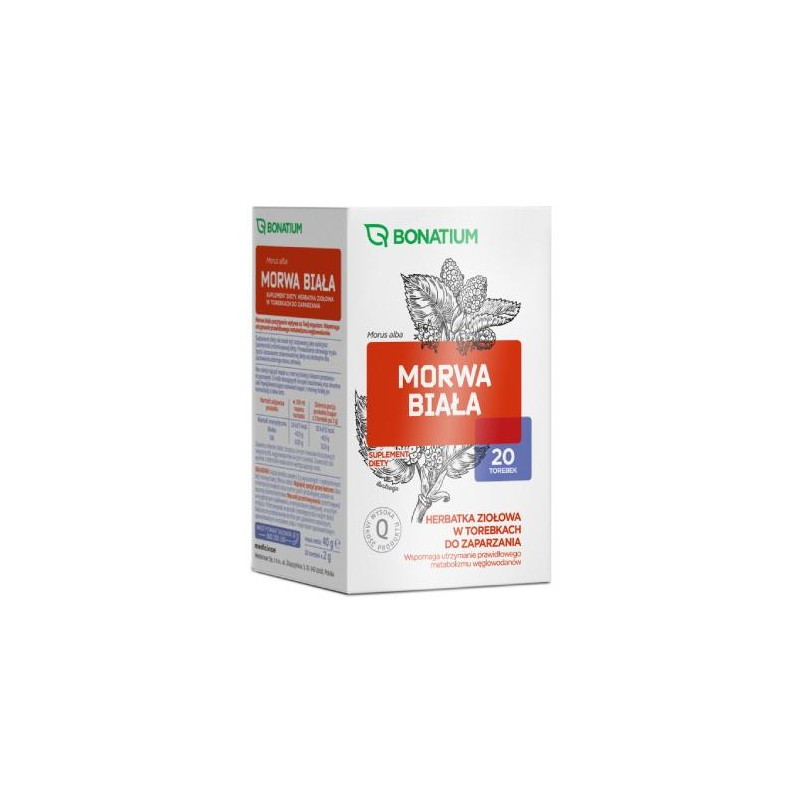 Każda torebka zawiera 2 g wysuszonych i rozdrobnionych liści morwy białej (Morus alba).