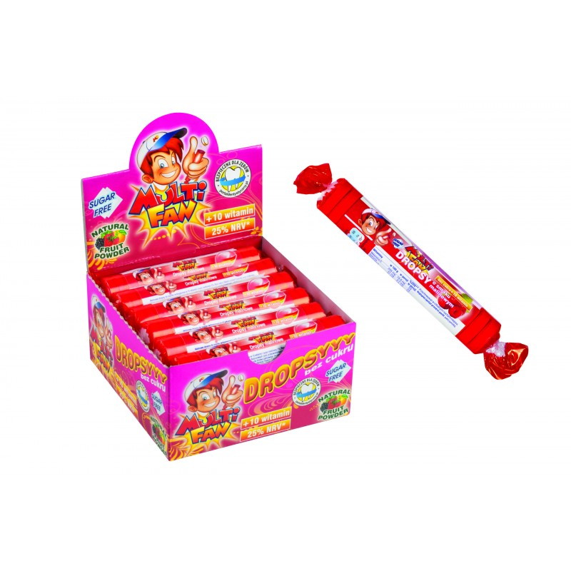 MULTIFAN pudrowe dropsy o smaku malinowym