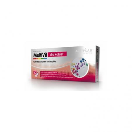 ActivLab® Pharma MultiVit dla kobiet to suplement diety w postaci kapsułek zawierający zestaw 13 witamin i 9 składników mineralnych. Formuła została uzupełniona o dodatek wyciągów roślinnych z ziela skrzyp polnego i nasion winogron oraz aminokwasy siarkowe (L-cysteinę i L-metioninę), hydrolizat białek kolagenowych, likopen i luteinę.