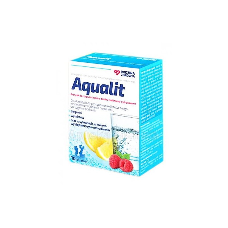 Aqualit to proszek do rozpuszczania o smaku malinowo-cytrynowym będący środkiem przeznaczonym do stosowania w stanach odwodnienia organizmu. Preparat zawiera glukozę, jony sodu oraz potasu, które mają wpływ na regulację gospodarki wodno-elektrolitowej, która jest wielce istotna w przypadku odwodnienia organizmu.