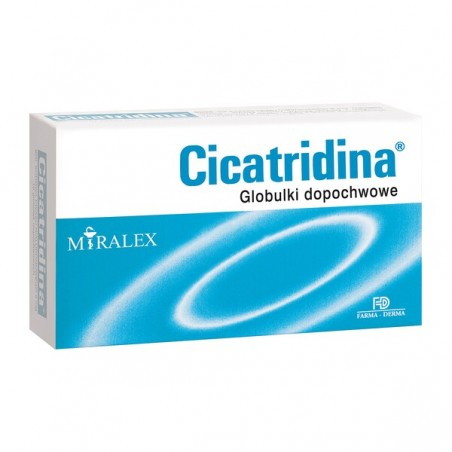 -Globulki dopochwowe Cicatridina są wskazane do stosowania jako preparat wspomagający proces regeneracji błony śluzowej pochwy w stanach atrofii i dystrofii.