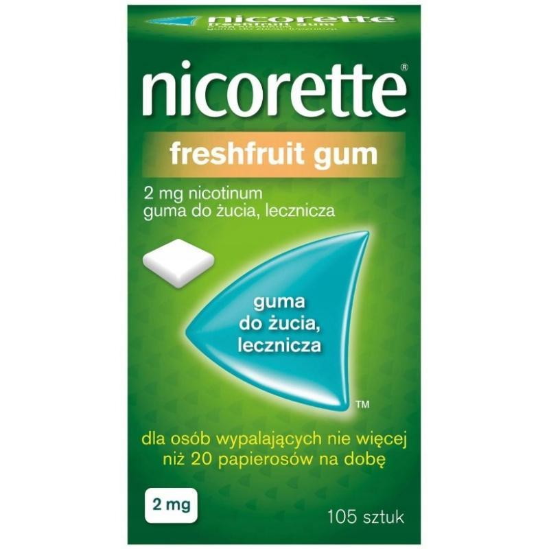 Guma Nicorette FreshFruit Gum to lek w postaci gumy do żucia, zawierający nikotynę, przeznaczony do nikotynowej terapii zastępczej (NTZ) ułatwiającej rzucenie palenia lub jego ograniczenie. Dostępna w dawkach 2 mg, pomaga zmniejszyć głód nikotynowy i objawy odstawienne, nie zawiera substancji smolistych ani dwutlenku węgla.
