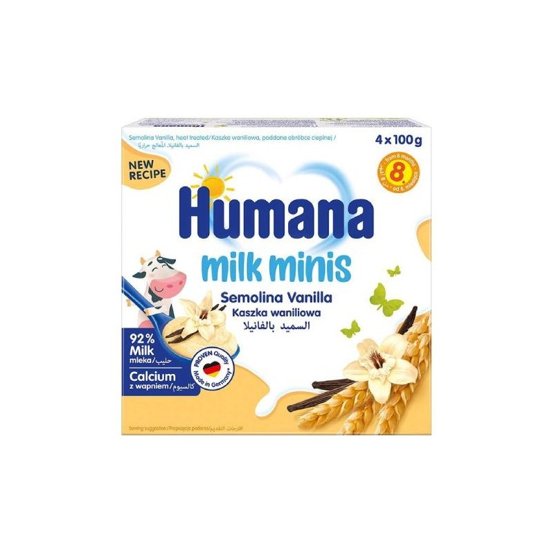 Głównym składnikiem Milk Minis marki Humana jest pełne mleko, będące naturalnym źródłem wapnia. Jedna porcja Kaszki waniliowej realizuje 25% zalecanego dziennego spożycia na wapń. Wapń to składnik mineralny niezbędny do prawidłowego wzrostu i rozwoju kości u dzieci.