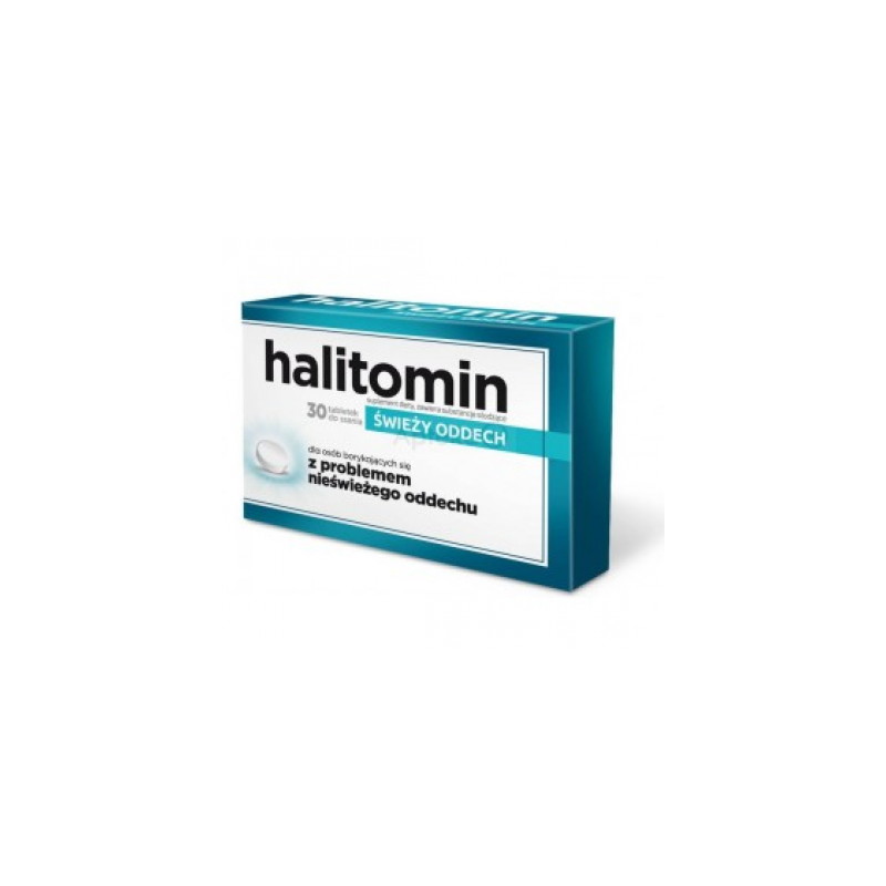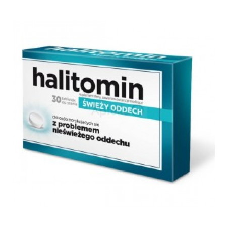 Suplement diety Halitomin zawiera wyciąg z ziela tymianku, cynk oraz mentol.