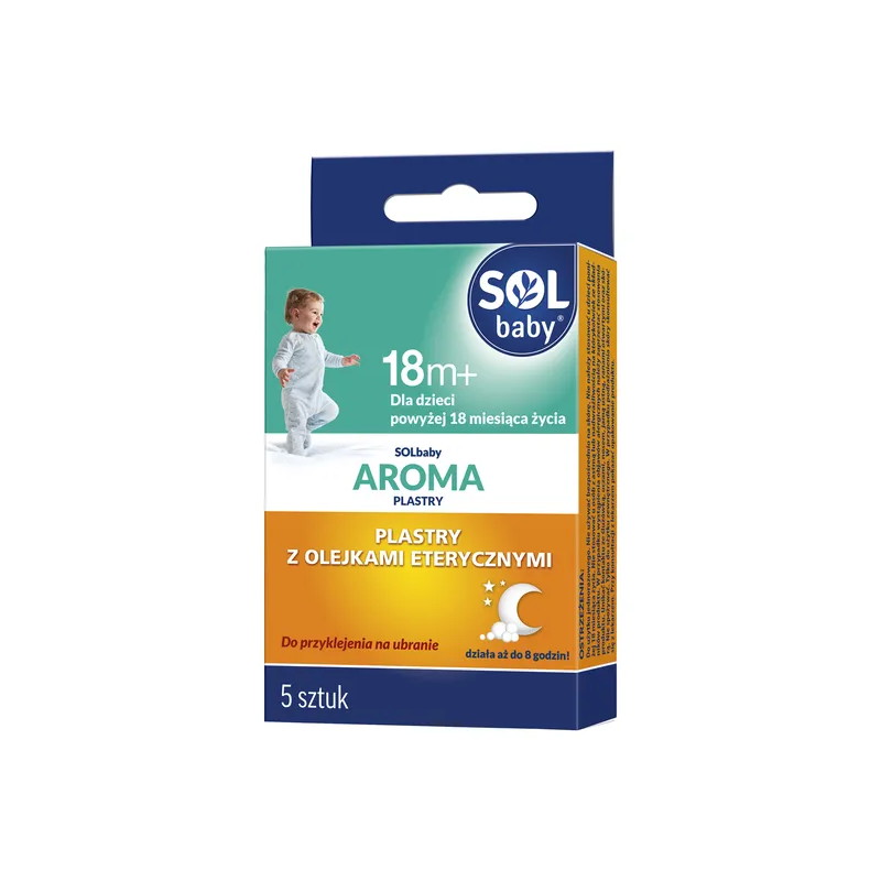 SOLbaby Aroma – plastry z olejkami eterycznymi do przyklejenia na ubranie dla dzieci powyżej 18 miesiąca życia. Działają aż 8 godzin.