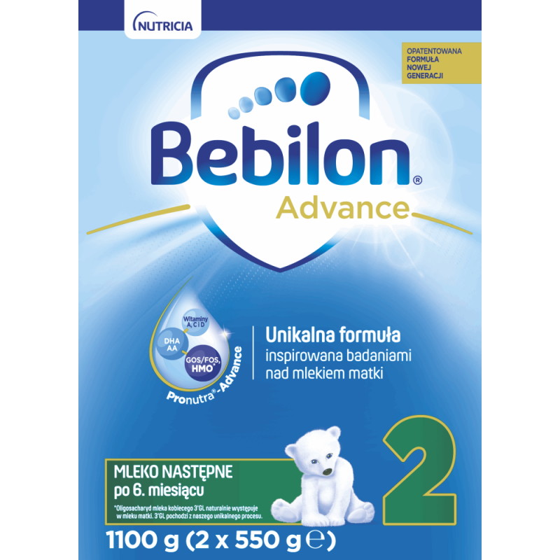 Bebilon Advance Pronutra 2 to mleko następne przeznaczone do uzupełniania diety niemowląt po 6 miesiącu życia, której podstawą jest mleko kobiece lub modyfikowane. Preparat posiada formułę, której stworzenie jest wynikiem wiedzy i doświadczenia zdobytych w czasie 40 lat badań nad mlekiem matki. Mleko Bebilon 2 zawiera składniki naturalnie obecne w kobiecym mleku. Kompletną kompozycję* tworzą m.in.: