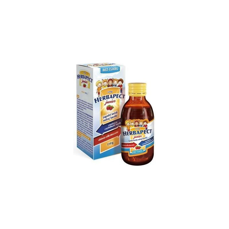 Wyrób medyczny Herbapect Junior bez cukru to syrop o smaku malinowym, który łagodzi zarówno suchy jak i mokry kaszel. Produkt przeznaczony jest dla dzieci powyżej 1 roku życia.