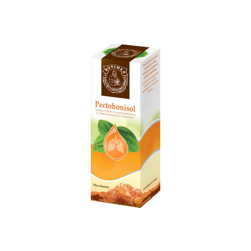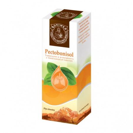 Pectobonisol to lek w formie ziołowego płynu doustnego, zawierający: sok z ziela babki lancetowatej, wyciąg z ziela tymianku oraz nalewki z kwiatostanu lipy, korzenia lukrecji i liścia mięty. Produkt leczniczy stosuje się tradycyjnie w przeziębieniu z towarzyszącym kaszlem.