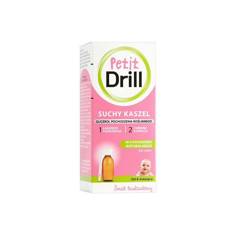 Wyrób medyczny Petit Drill do syrop o smaku truskawkowym przeznaczony dla dzieci.