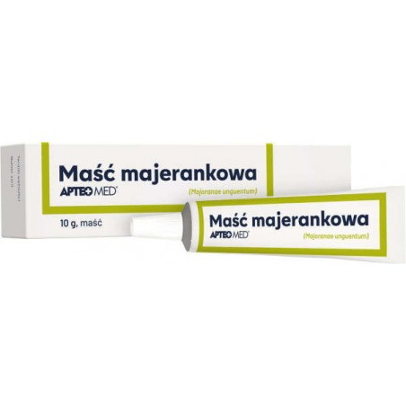 Preparat ma jasnozielony kolor oraz zapach charakterystyczny dla ziela majeranku. Produkt leczniczy Apteo Med Maść majerankowa wskazany jest do stosowania pomocniczo w przypadku kataru (zapalenia błony śluzowej nosa). Lek cechuje się słabym działaniem przeciwbakteryjnym. Można stosować u dzieci powyżej 1. roku życia, młodzieży, dorosłych.