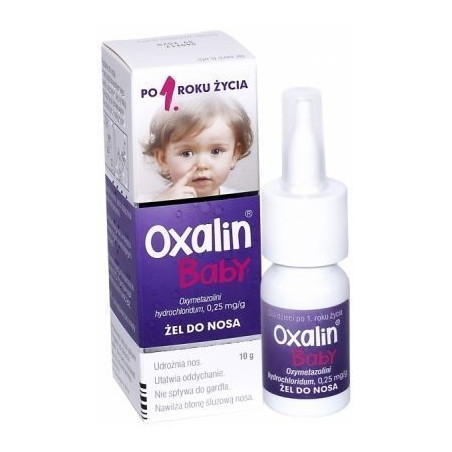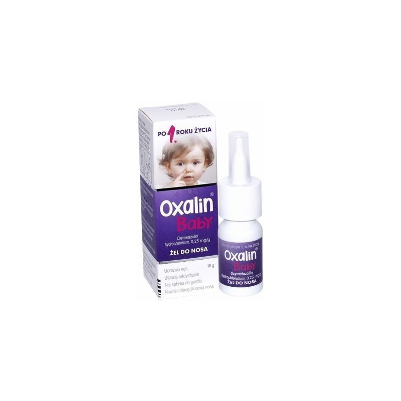 Lek Oxalin 0,025% zawiera chlorowodorek oksymetazoliny, który stosowany miejscowo na błonę śluzową nosa, powoduje zwężenie naczyń krwionośnych, zmniejszenie obrzęku błony śluzowej nosa i zahamowanie nadmiernego wydzielania wydzieliny. Poprawia drożność przewodów nosowych, ułatwia odpływ wydzieliny z zatok przynosowych. Oxalin Baby to krople na katar dla dzieci w wieku 1-6 lat.
