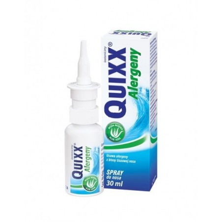 Spray do nosa QUIXX* Alergeny to izotoniczny spray do nosa zawierający wodę z Oceanu Atlantyckiego wraz z jej cennymi minerałami i mikroelementami, oraz z dodatkiem ekstraktu Aloe Vera. Stężenie soli w produkcie jest dostosowane do naturalnego stężenia soli w organizmie człowieka, dzięki czemu spray jest łagodny dla nosa.