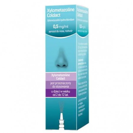 Xylometazoline Coldact, 0,5 mg/ml, aerozol do nosa, 10 ml to lek zawierający w swym składzie 0,5 mg/ml Ksylometazoliny i kwas hialuronowy.