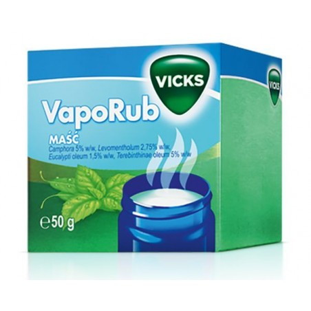 Vicks VapoRub to lek w postaci maści, stosowany przy objawach podrażnień oraz stanów zapalnych błony śluzowej nosa i gardła. Maść zawiera substancje łagodzące dolegliwości górnych dróg oddechowych w katarze.