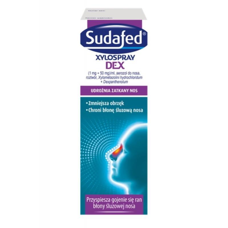 Sudafed Xylospray DEX to lek w postaci aerozolu do nosa stosowany głównie, aby zmniejszyć obrzęk i leczyć uszkodzenia błony śluzowej. Sudafed Xylospray DEX zawiera 2 substancje czynne: chlorowodorek ksylometazoliny, który powoduje szybkie obkurczenie naczyń krwionośnych w nosie, natomiast deksopantenol chroni i skraca czas gojenia się ran. Lek można stosować u dzieci w wieku powyżej 6 lat oraz dorosłych.