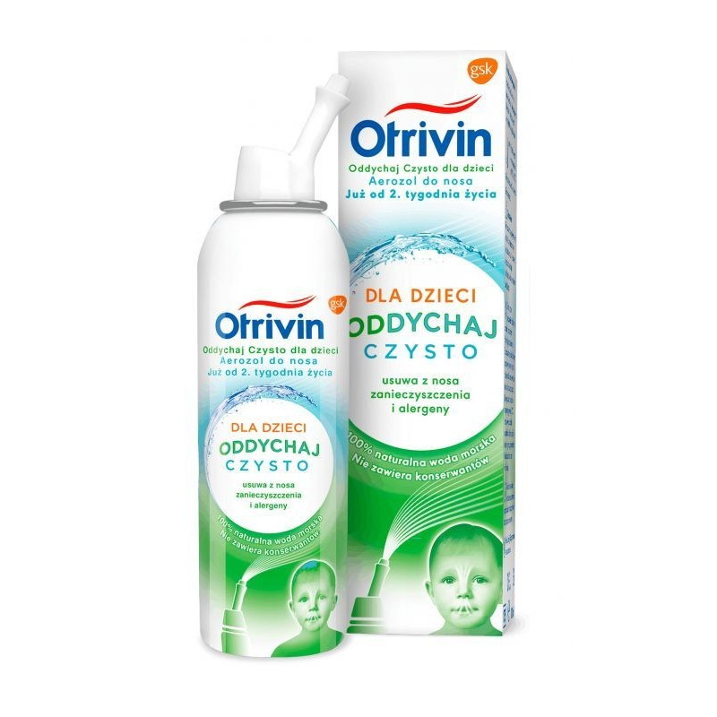 Otrivin Oddychaj Czysto dla dzieci to aerozol do nosa odpowiedni dla niemowląt i dzieci już od 2 tygodnia życia. Wyrób medyczny przeznaczony jest do codziennego oczyszczania nosa w celu usuwania nadmiaru wydzieliny z jamy nosowej. Udrożniony nos pozwala dziecku swobodnie oddychać i umożliwia zredukować negatywne uczucia w przypadku trudności w zasypianiu i jedzeniu, które mogą występować przy zapchanym nosie. 100% naturalny izotoniczny roztwór wody morskiej ma postać drobnej mgiełki, dzięki czemu możliwe jest łagodne i dokładne oczyszczanie zatkanego nosa dziecka i usuwanie wydzieliny.