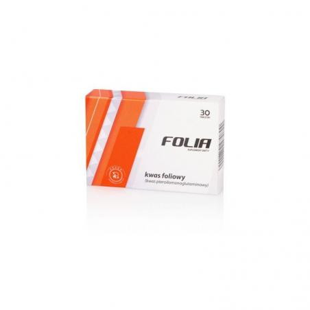 Folia to suplement diety w kapsułkach, dostarczający 400 µg kwasu foliowego w każdej tabletce, rekomendowany dla kobiet w ciąży i planujących ciążę. Kwas foliowy wspiera prawidłowy rozwój tkanek matczynych, syntezę aminokwasów, produkcję krwi, metabolizm homocysteiny, funkcje psychologiczne, odporność oraz redukuje uczucie zmęczenia.