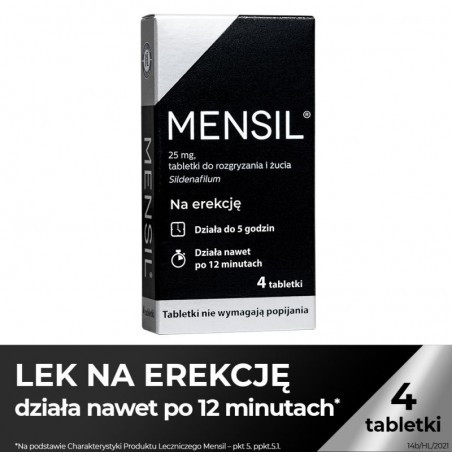 Produkt leczniczy Mensil jest wskazany do stosowania u dorosłych mężczyzn z zaburzeniami erekcji, czyli niezdolnością uzyskania lub utrzymania erekcji prącia wystarczającej do odbycia stosunku płciowego.