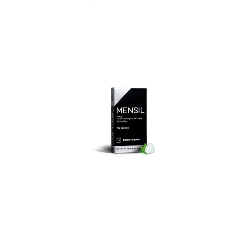 Mensil to lek na zaburzenia wzwodu u dorosłych mężczyzn, zawierający syldenafil, który wspomaga napływ krwi do prącia podczas podniecenia seksualnego. Lek działa wyłącznie pod warunkiem uprzedniego pobudzenia seksualnego i należy go przyjmować około godzinę przed planowaną aktywnością, rozgryzając tabletkę.