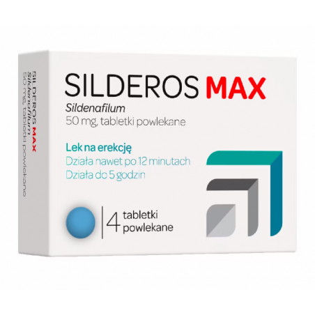 Lek SILDEROS MAX jest stosowany w leczeniu zaburzeń wzwodu u dorosłych mężczyzn, zwanych także impotencją. Jest to niemożność uzyskania lub utrzymania erekcji prącia wystarczającej do odbycia stosunku płciowego.