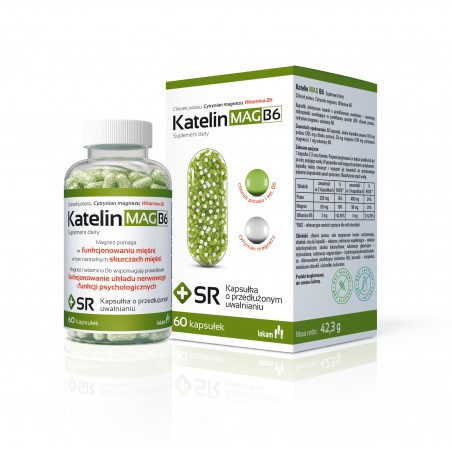Kapsułki żelatynowe twarde o przedłużonym uwalnianiu - zawierają mikropeletki uwalniające w przedłużony sposób (SR) chlorek potasu, cytrynian magnezu i witaminę B6.