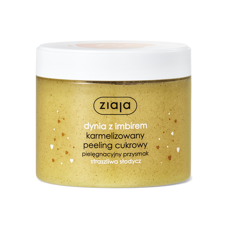 Peeling cukrowy – delikatnie złuszcza i wygładza skórę ciała, pozostawiając ją miękką w dotyku i przyjemnie pachnącą karmelizowaną dynią z imbirem.