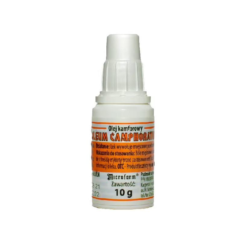 Olej kamforowy, Microfarm to 10 % roztwór oleju kamforowego przeznaczonego do stosowania na skórę. Lek wywołuje miejscowe przekrwienie. Stosowany zewnętrznie na skórę w bólach mięśniowych i stawowych.