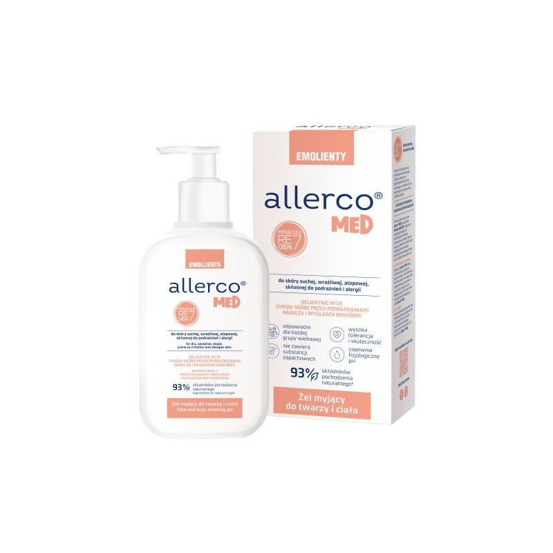 Żel myjący Allerco® przeznaczony jest do mycia twarzy i ciała. Stosować codziennie rano i wieczorem. Niewielką ilość żelu nanieść na zwilżona skórę i delikatnie masować do uzyskania piany. Spłukać wodą, po czym skórę delikatnie osuszyć ręcznikiem i nanieść preparat pielęgnacyjny z linii allerco®.