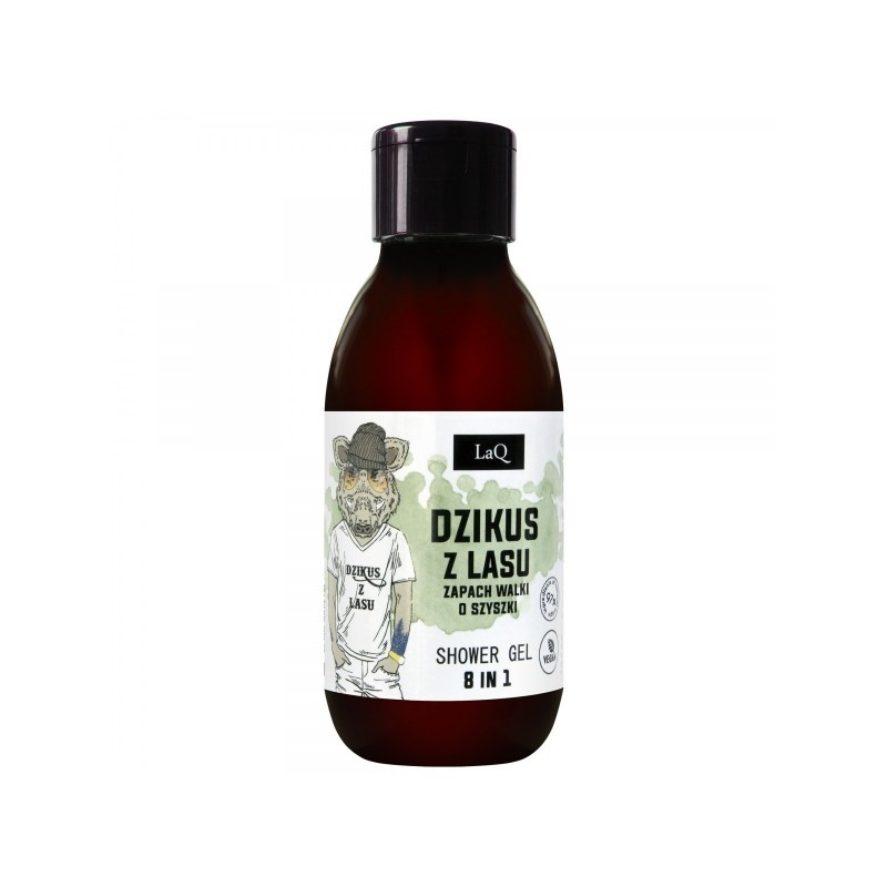Żel pod prysznic LaQ Dzikus z Lasu 8 w 1 dla mężczyzn to wielofunkcyjny produkt do pielęgnacji ciała, twarzy i włosów, który może być również stosowany do golenia. Żel ma męski, świeży zapach i bazuje na delikatnych substancjach myjących. Zawiera glicerynę pochodzenia roślinnego, która działa silnie higroskopijnie, dzięki czemu przenika przez warstwę rogową naskórka, zapewniając odpowiednie nawilżenie.