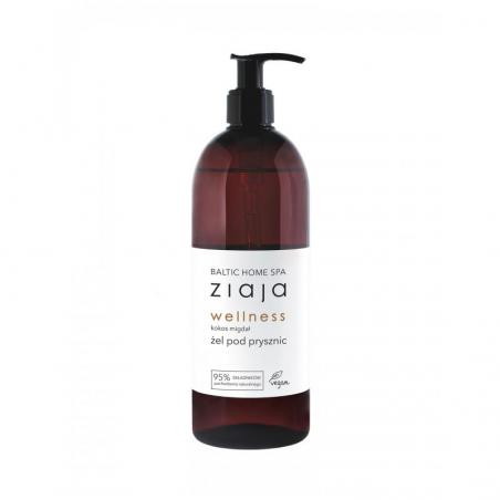 Ziaja Baltic Home SPA Wellness Żel pod prysznic o zapachu kokosa i migdała delikatnie oczyszcza skórę, nie naruszając jej naturalnego mikrobiomu. Pozostawia ją gładką i zadbaną. Zawiera 95% składników pochodzenia naturalnego i jest produktem wegańskim.
