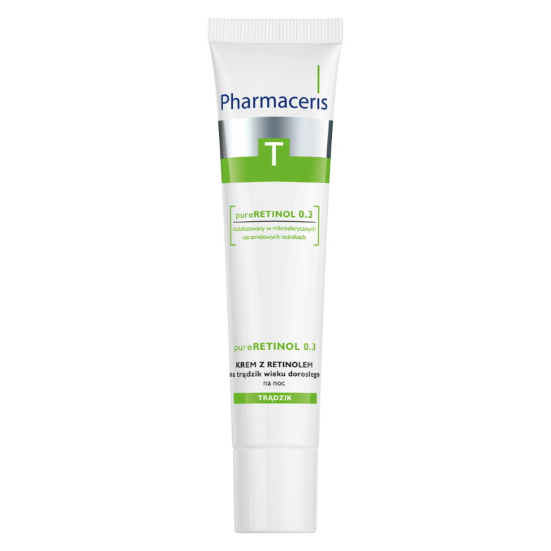 Krem oparty na wysokim stężeniu czystego 0,3% retinolu w kremie wykazuje zrównoważone działanie przeciwtrądzikowo-przeciwzmarszczkowe, stanowiąc skuteczną kurację przywracającą prawidłowe funkcjonowanie skóry w okresie zmian hormonalnych.