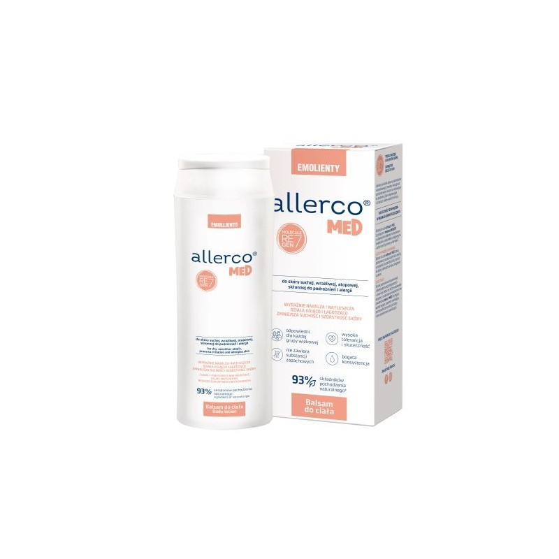 Balsam do ciała Allerco® nanieść cienką warstwą na powierzchnię skóry. Szczególnie zalecane jest użycie preparatu po każdym umyciu i delikatnym osuszeniu skóry. Należy stosować codziennie.