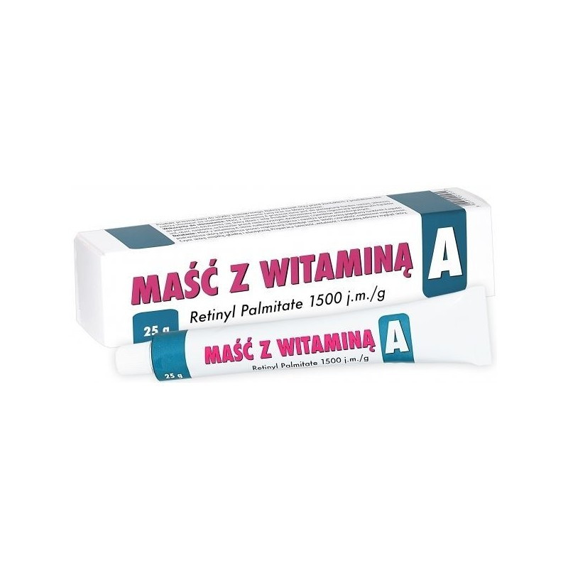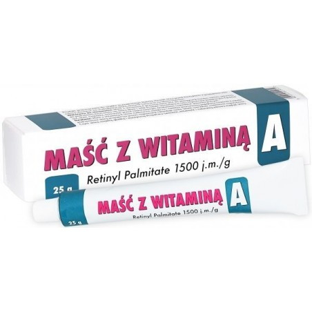 Maść z witaminą A – jedną z form witaminy A jest palmitynian retinolu, który działa na zewnętrzne warstwy naskórka: zwiększa intensywność syntezy kolagenu w skórze właściwej, dodatkowo przyczynia się do podwyższenia bariery ochronnej skóry na działanie promieniowania UV oraz temperatury. Witaminę A poleca się stosować w przypadku skóry suchej, szorstkiej, zrogowaciałej, łuszczącej się, a także w przypadku utraty elastyczności.
