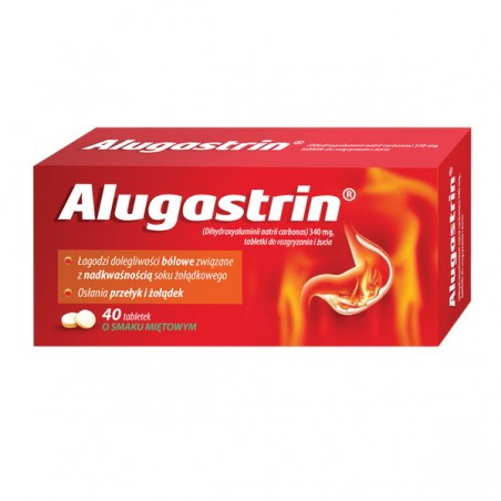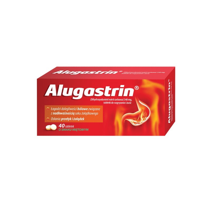Alugastrin to lek zobojętniający nadmiar kwasu solnego w soku żołądkowym, jednocześnie nie pobudza jego wtórnego wydzielania. Tabletki do rozgryzania i żucia Alugastrin stosuje się w nadkwasocie, wrzodach żołądka i dwunastnicy, a także przy uszkodzonej błonie śluzowej dwunastnicy czy żołądka. Produkt leczniczy jest przeznaczony do krótkotrwałego stosowania u dorosłych oraz dzieci w wieku powyżej 6 lat.