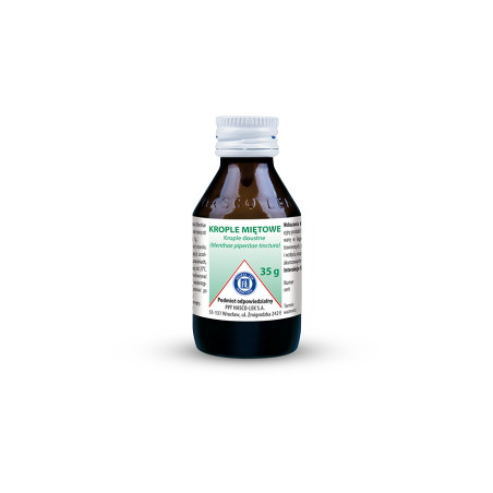 nalewka miętowa (Menthae piperitae tinctura) o zawartości olejku miętowego nie mniej niż 5%, DER 1:19,7-21, ekstahent: etanol 90% (v/v) 1 g.